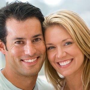 Couple indoors smiling